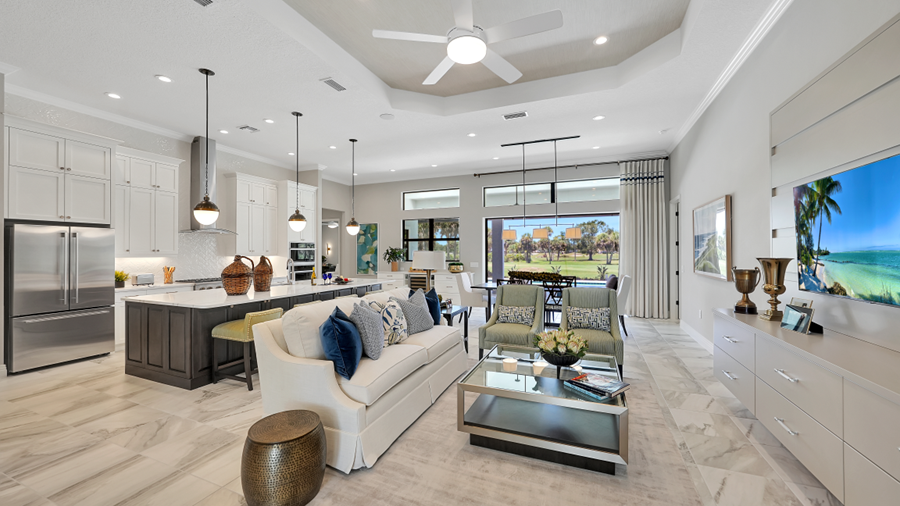 Southwest Florida luxury home builder Neal Signature Homes has officially opened its model in St. Lucia, a small enclave within Boca Royale Golf & Country Club. The larger community is a 1,000-acre gated, master-planned neighborhood graced with pristine lakes and lush nature preserves and featuring an impeccable landscape of oaks and tropical palm trees. It offers a country club lifestyle including a Georgian-style clubhouse with an on-site activities director, casual and fine dining, a resort-style pool and spa, two dog parks, a state-of-the-art fitness room and 6 Har-Tru tennis courts and pickleball, bocce ball and croquet courts. For golf lovers, there is also an 18-hole golf course, driving range and putting green.